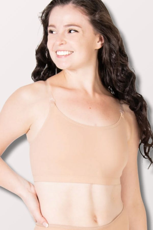 TotalSTRETCH Pull On Bra with Clear Straps (261) - Dark Nude