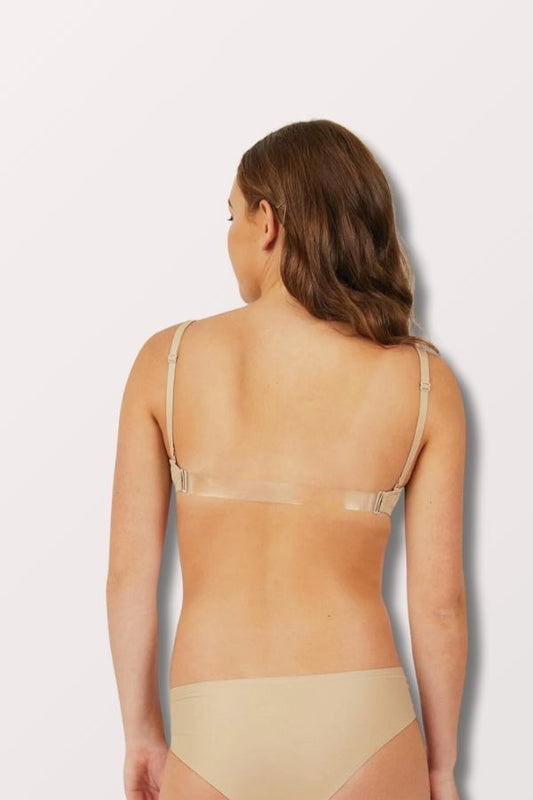 Our Low PricetotalSTRETCH Deep V Padded Bra with Clear Straps - Nude