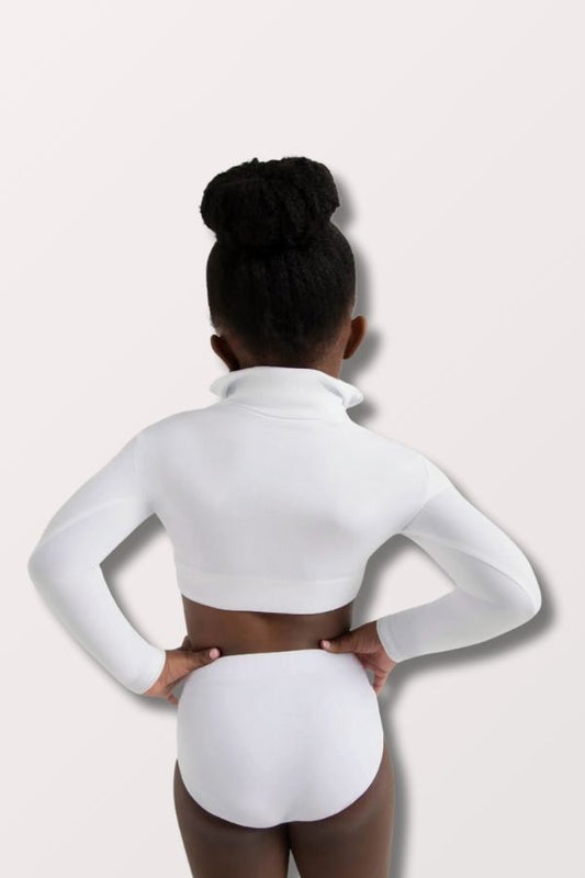 Children's Turtleneck Long Sleeve Crop Top w/Zipper - White