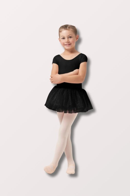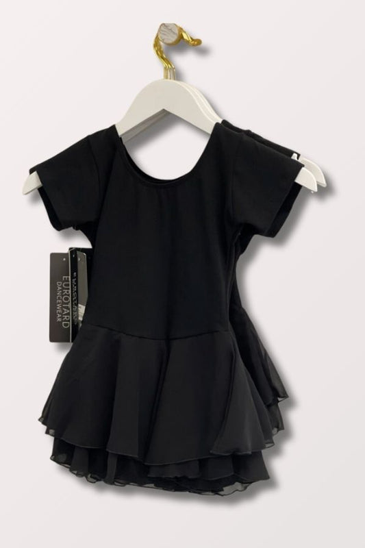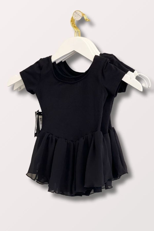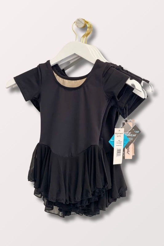 Child Short Sleeve Leotard with Double Layered Skirt - Black