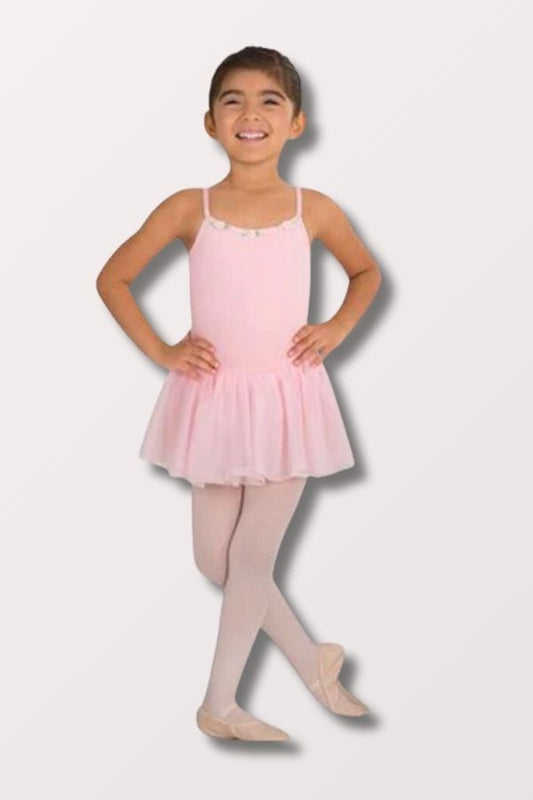 Girls Rosette Neckline Camisole Leotard Dress - Light Pink