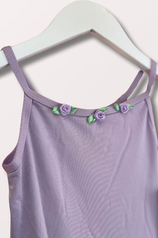 Our Low PriceGirls Rosette Neckline Camisole Leotard Dress - Lilac