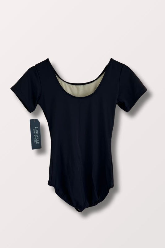 Women's Cotton Lycra Plus Size Short Sleeve Leotard - Black