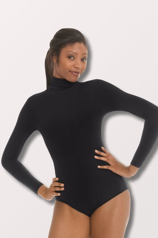 Our Low PriceAdult Mock Neck Microfiber Long Sleeve Leotard - Black